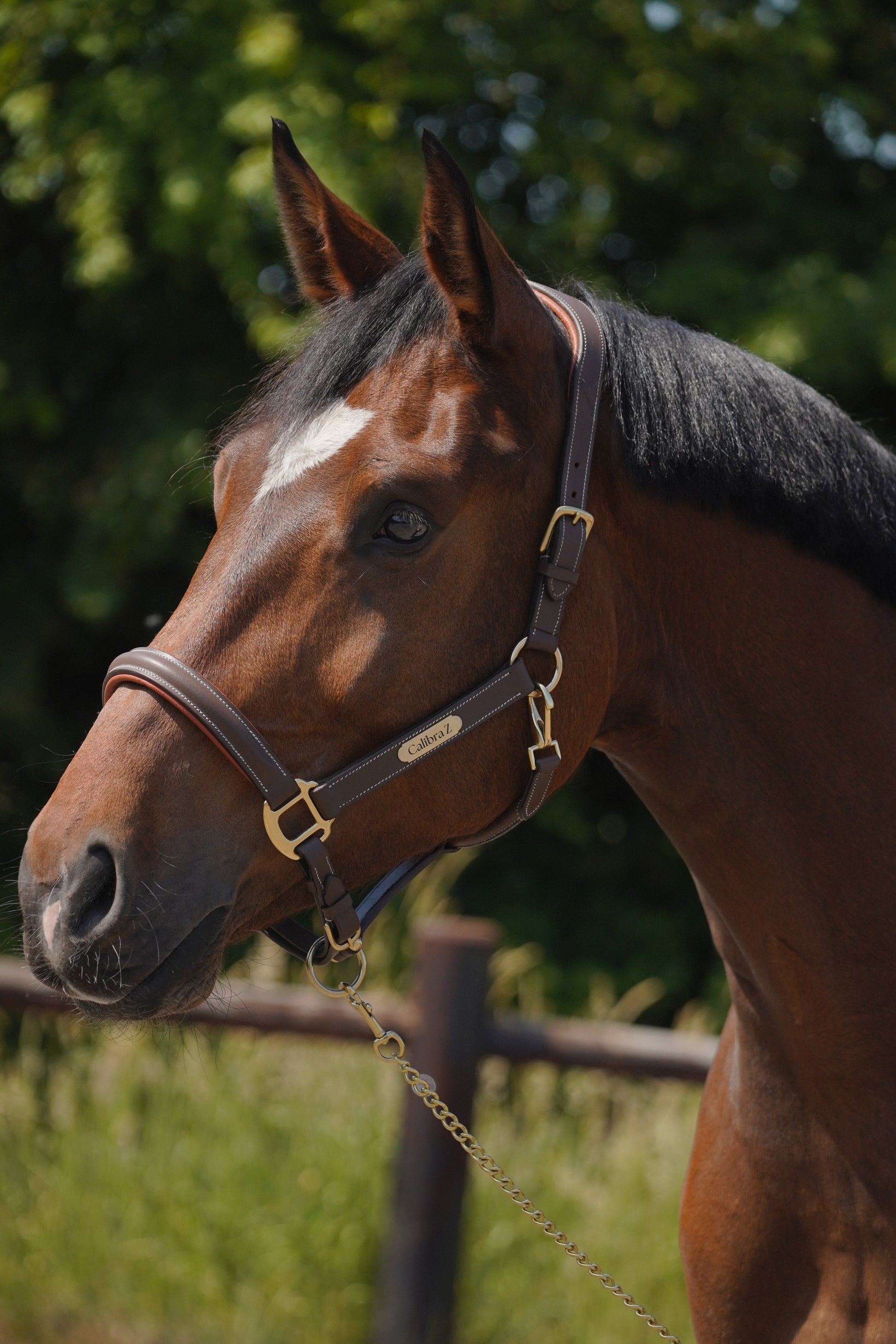 Geef je paard de perfecte combinatie van comfort en stijl met dit luxe leren halster. Handgemaakt van hoogwaardig leer en anatomisch gevormd voor een optimale pasvorm. Uitgerust met een naamplaatje dat naar wens gegraveerd kan worden, voor een unieke en persoonlijke uitstraling.